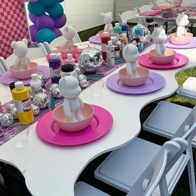 Every craft party includes a themed tablescape, customized placemats, and kid-friendly tables and chairs—styled to match your chosen theme for a cohesive, Instagram-worthy look.